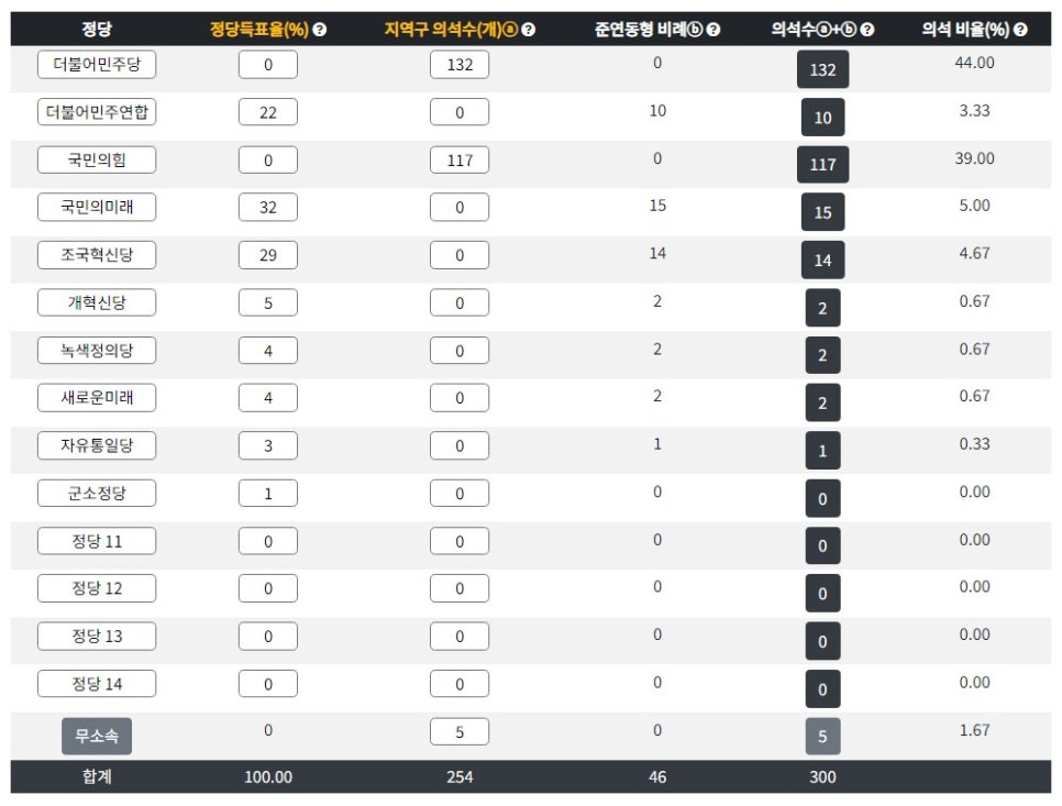 의석수 계산기 (by 참여연대)